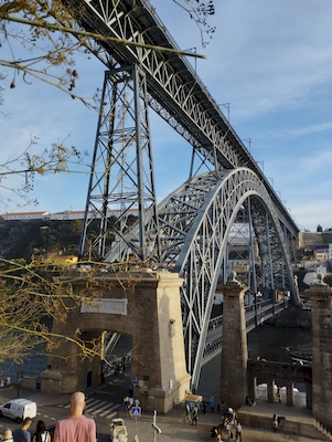 [Tuesday 14 October: Porto] Our last cycling day. We had rented the bicycles for two weeks, and today was our 14th day. It was flat and easy from Angeiras, all along the coast on dedicated cycle tracks. At the mouth of the Douro River we turned inland and continued towards Porto on the northern bank of the river. The last kilometre to our guest house was, of course, brutal and steep up the hilly streets of Porto's old town.